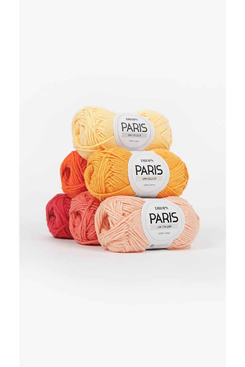 DROPS Paris er spunnet av flere tynne tråder av 100% bomull – et fiber som puster og absorberer godt, hvilket gjør at plagg strikket i bomull svaler samtidig, som det varmer.