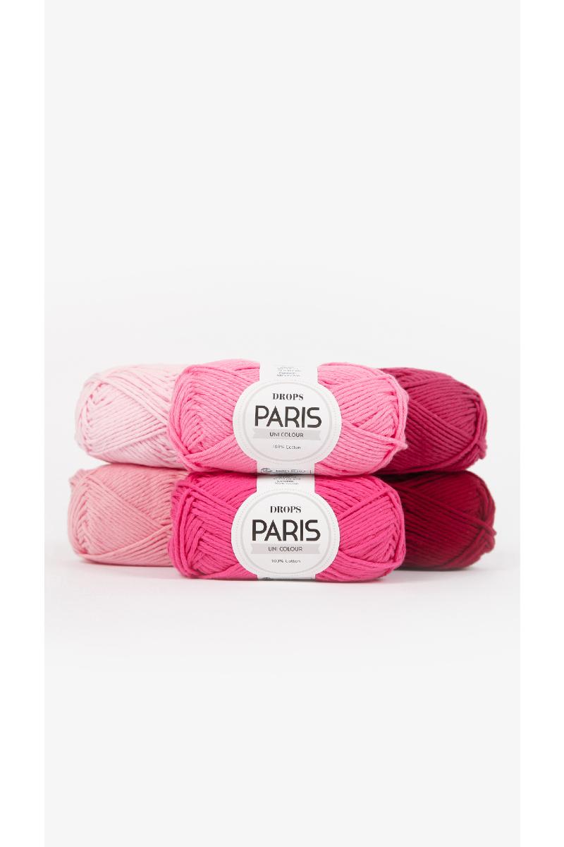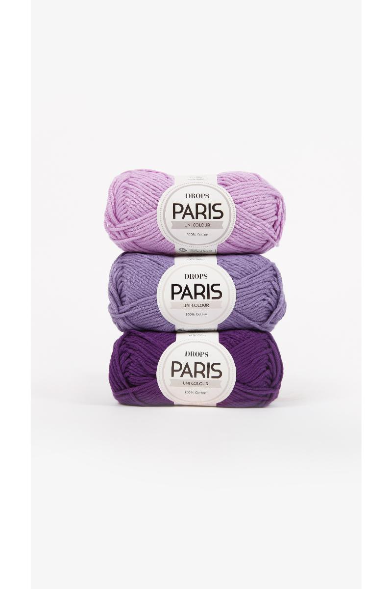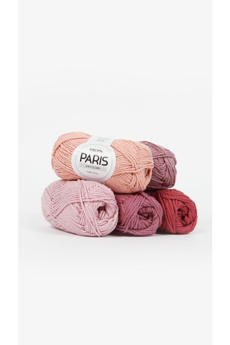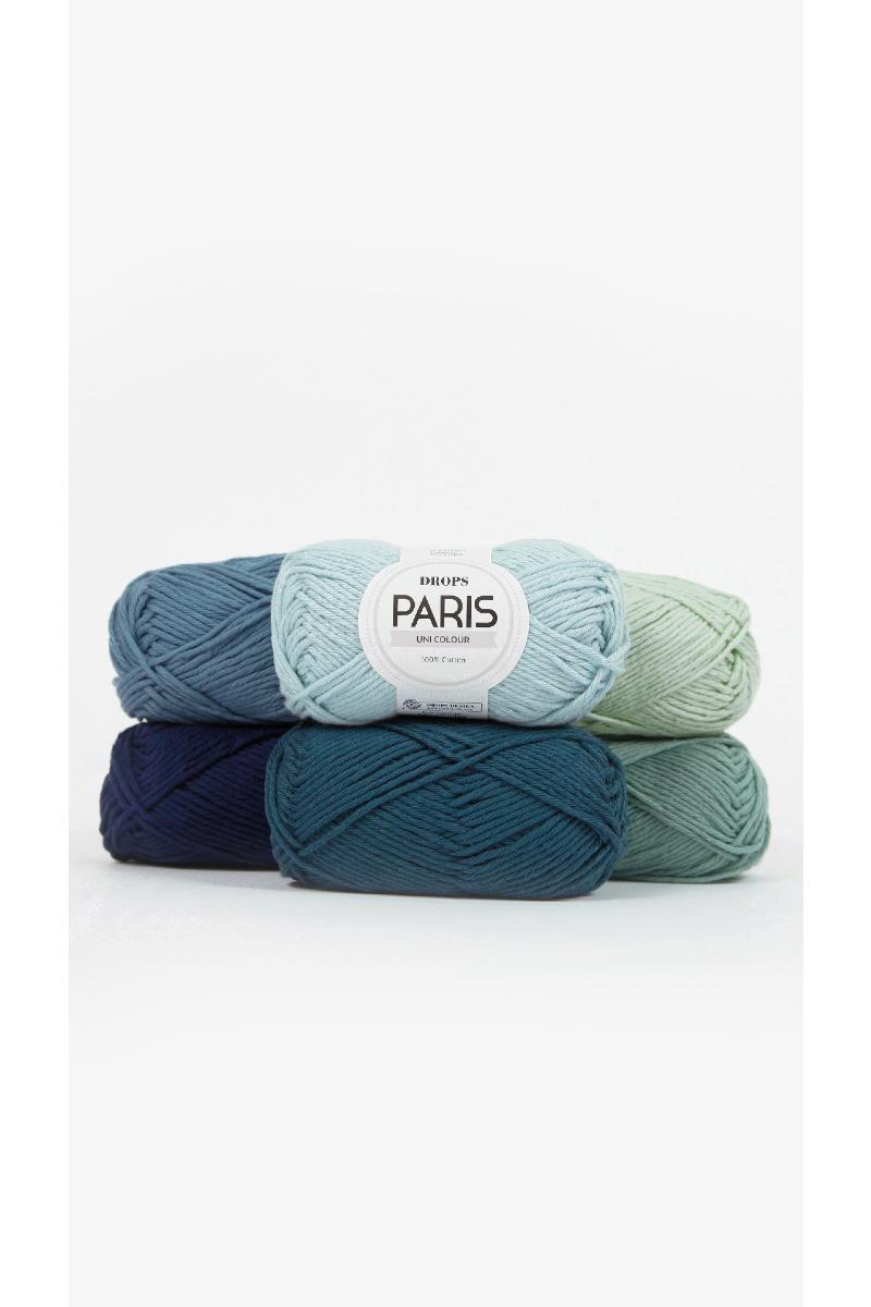 Garnet har en rekke spennende farger og føles myk mot huden, og det finnes i to forskjellige varianter: DROPS Paris Uni Colour, laget av 100% kjemmet bomull og DROPS Paris Recycled Denim, laget av 100% resirkulert bomull.