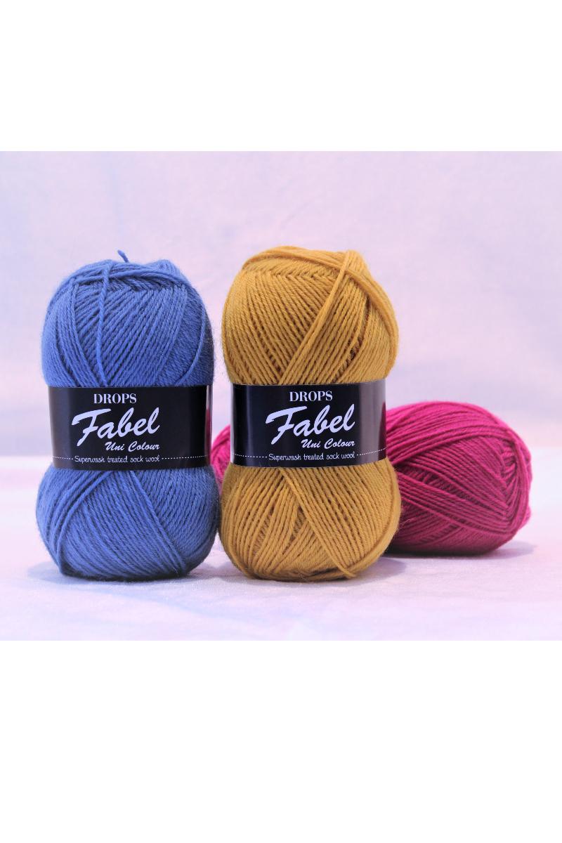 Slitesterkt som bare et sokkegarn kan være! DROPS Fabel er et 4-tråds garn som er superwash-behandlet, hvilket gjør det egnet til daglig bruk i tillegg til at det kan vaskes i maskin. I motsetning til vanlig sokkegarn, er Fabel spunnet i en finere ullkvalitet. Dette gjør at Fabel egner seg til langt mer enn bare sokker - prøv det for eksempel på babyplagg!