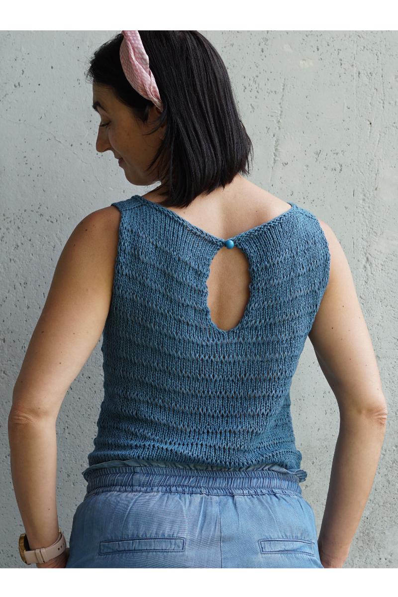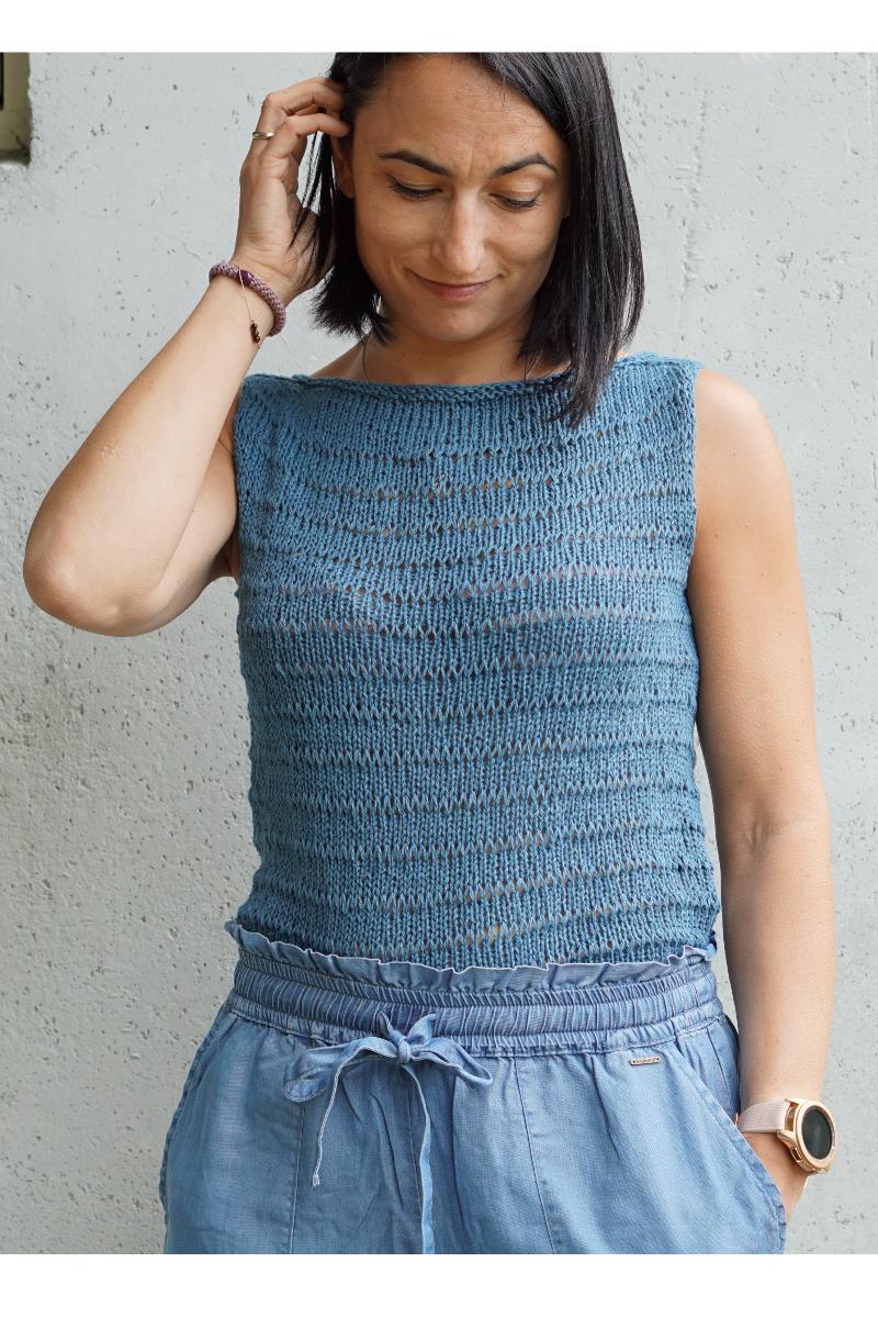 Oppskriften inneholder beskrivelse av to ulike versjoner av toppen, en som strikkes med doble kast (mønster 2), og en med enkle kast (mønster 3). Førstnevnte blir litt mer luftig og gjennomsiktig. Du kan også velge mellom enkle kast (mønster 1) eller glattstrikk over skuldermaskene. Siden toppen strikkes ovenfra og ned, så er det enkelt å prøve den på underveis og tilpasse den akkurat deg.