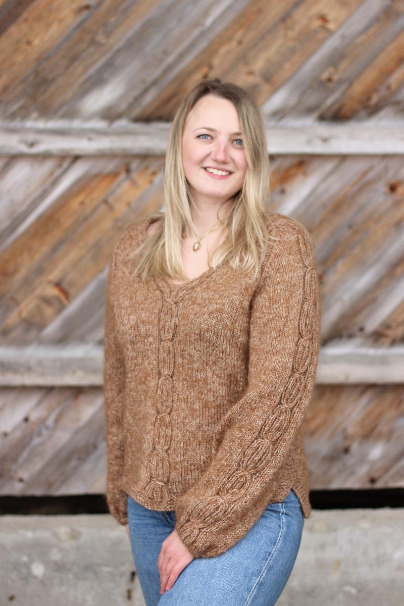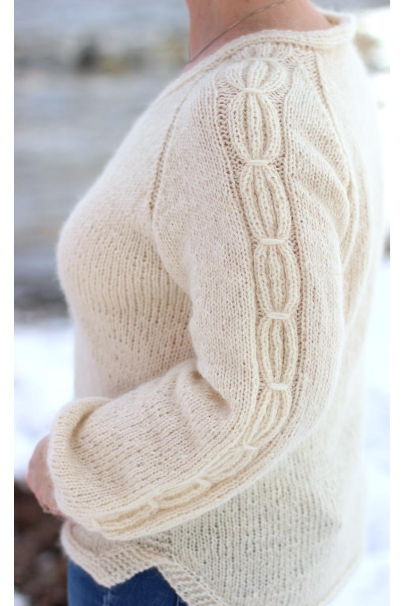 Jukseflette genser passer både for nybegynnere og mer erfarne strikkere. Den strikkes nedenfra og opp, med dobbel tråd på mellomtykke pinner.