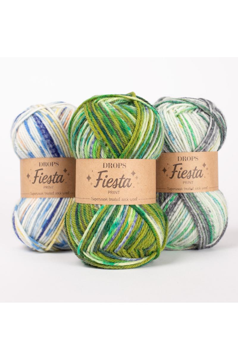 Printfargene i DROPS Fiesta har et håndfarget utseende, med små variasjoner i mønster og nyanser, som betyr at to nøster ikke er like. Disse variasjonene er ikke defekte, men et karakteristisk kjennetegn av fargeteknikken som brukes i dette garnet.