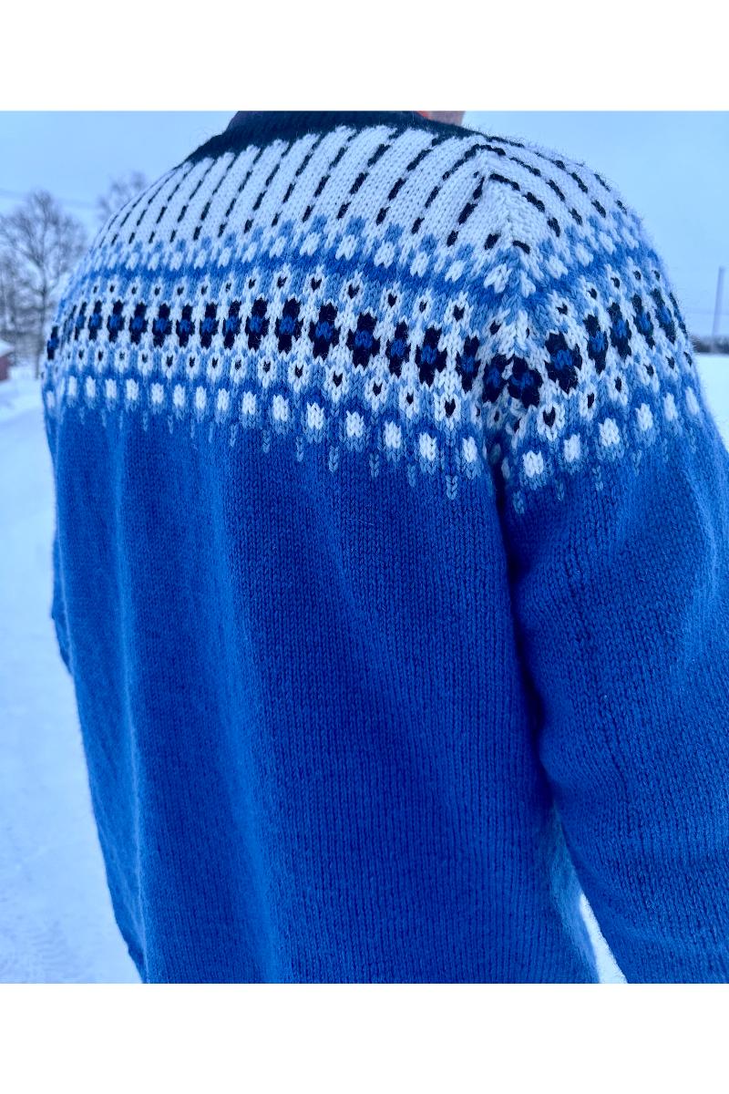 Blåberga genseren er designet av RørosStrikk, som er GarnPrat sin egen eksklusive designer.